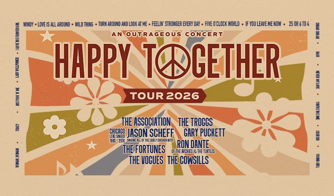 The Happy Together Tour is back! The touring sensation that has criss-crossed the nation delighting audiences for over a decade returns this summer with a show full of chart-topping hits from the ‘60s and ‘70s – an undeniable 61 Billboard Top 40 smashes.